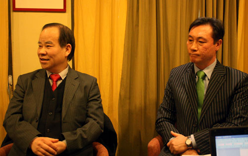 ▲(사)한국복지목회협의회 대표 장윤제 목사(우)와 굿아이디어창조연구원 황명찬 교수(좌).